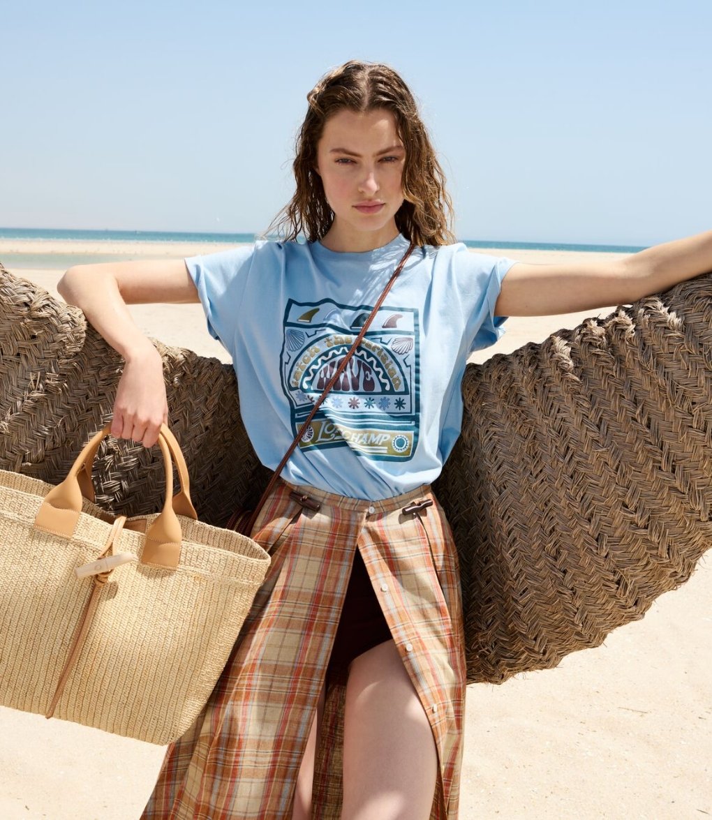 From sun-faded gradients to fluid silhouettes and handcrafted details, the collection captures surf freedom with Parisian elegance.